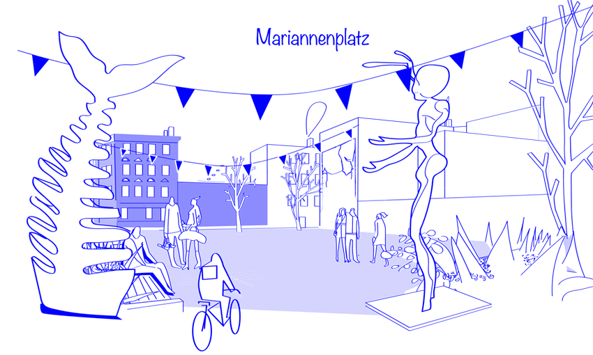 Die bisher noch im Dornröschenschlaf versunkene Freifläche am `Mariannenplatz´ soll in absehbarer Zeit Stadtteilplatz werden. Auch in diesem Jahr soll im Rahmen einer Open-Air-Ausstellung das Potential der bereits frei geräumte Platzfläche an der Haltestelle Mariannenstraße aufgezeigt werden. Der Magdeburger Künstler Joachim Röderer (www.jroederer.de) fertigt seit den 1980er Jahren Stahlskulpturen für den privaten und öffentlichen Raum. Auf dem `Mariannenplatz´ wird dazu eine Auswahl großer Objekte aus den letzten Jahren gezeigt.